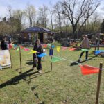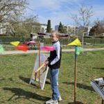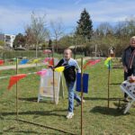 Frühen Besuch, der kräftig beim Aufbau der Rähmchenweitwurf-Strecke mithalf, war Bienenpate Bernd Liedtke mit seiner Familie.