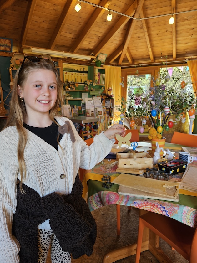 Das Bienenwabenbasteln machte wie immer Spaß, und auch die Kleinsten waren gut versorgt mit Vorlesen, Biene-Maja-Spiel und Schokotäfelchen.
