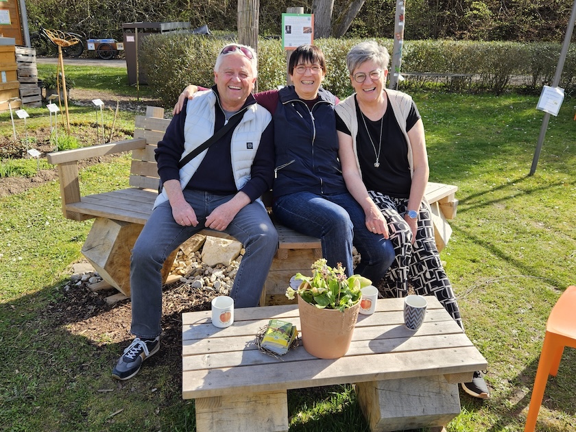 Mit Bienenpatin Danny Brech und ihrem Ehemann Dietmar genossen wir ganz entspannt die Sonnenstrahlen und einen Ratsch.